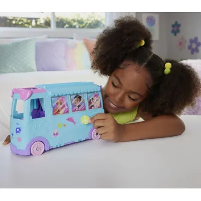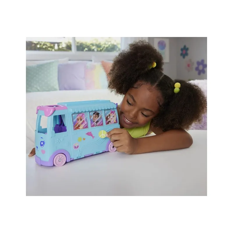Polly Pocket Pet Mobile Adventure JCC22 to niezwykły, transformujący kamper, który po rozłożeniu zamienia się w tętniący życiem, kolorowy świat pełen atrakcji. Ten kompaktowy pojazd kryje w sobie rozbudowaną przestrzeń do zabawy, dzięki której dzieci mogą tworzyć własne historie o podróżach, przyjaźni i opiece nad zwierzątkami. Otwierany kamper odsłania różnorodne strefy tematyczne oraz ruchome elementy, które urozmaicają zabawę i zachęcają do kreatywnego odgrywania ról.