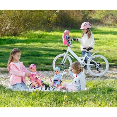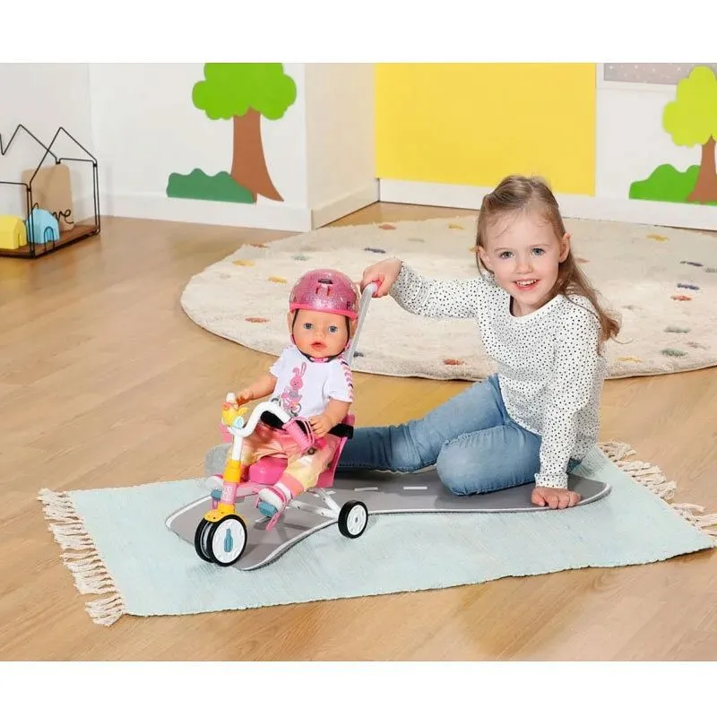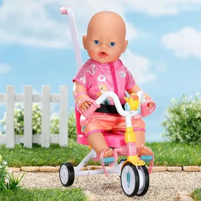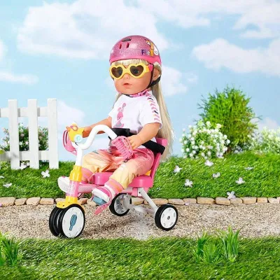 Pozwól swojej lalce BABY Born odkryć radość z przejażdżek dzięki uroczemu rowerkowi trójkołowemu! Ten funkcjonalny pojazd został zaprojektowany specjalnie dla lalek BABY Born o wzroście 43 cm, by zapewnić realistyczną, bezpieczną i pełną zabawy jazdę.