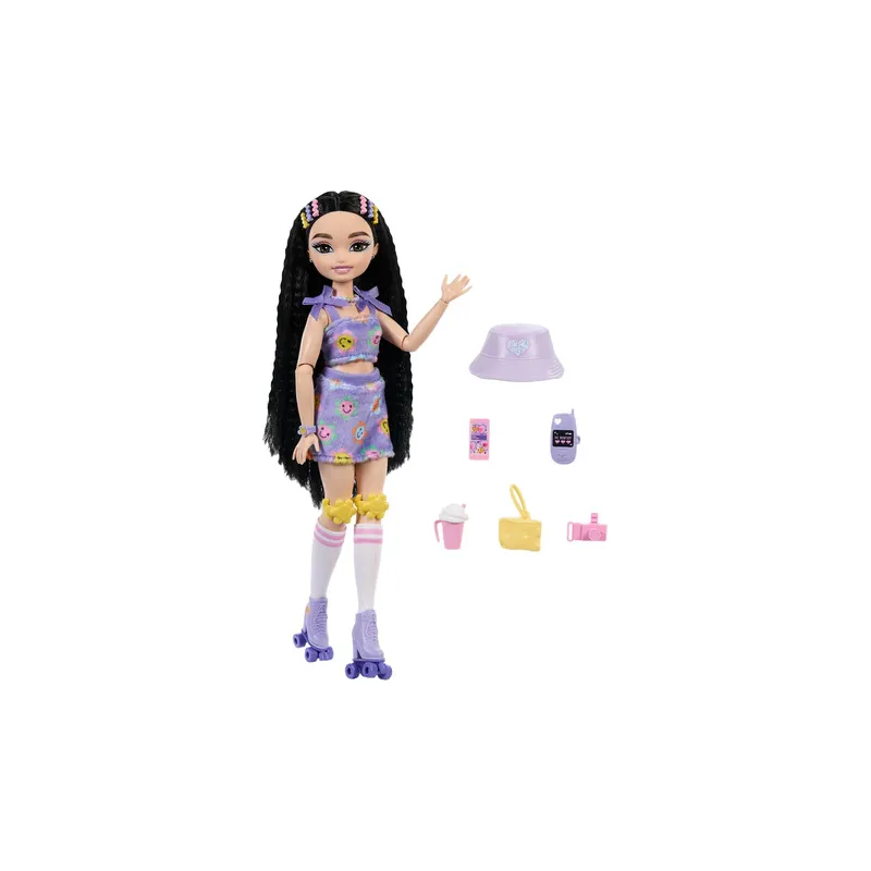 W zestawie znajdują się liczne akcesoria tematyczne: urocza torebka w kształcie sera, kapelusz, kwiatowa bransoletka, ochraniacze na kolana w kwiatowy wzór, smoothie, naszyjnik, aparat oraz komórka z etui – wszystko, czego potrzebuje młoda miłośniczka mody i sportu!