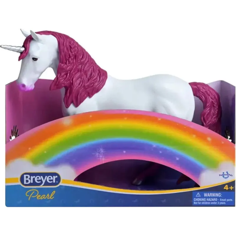 Pearl to biało-różowy jednorożec z kolekcji Breyer Paddock Pals, pełen magii i uroku. Idealna figurka do zabawy i kolekcjonowania dla dzieci powyżej 4 lat.