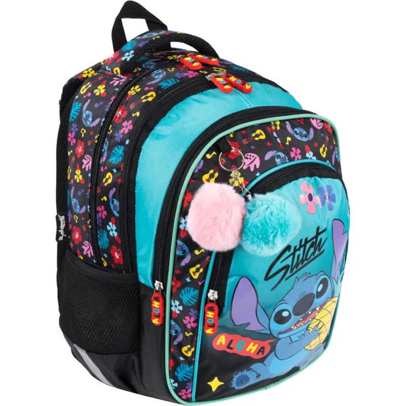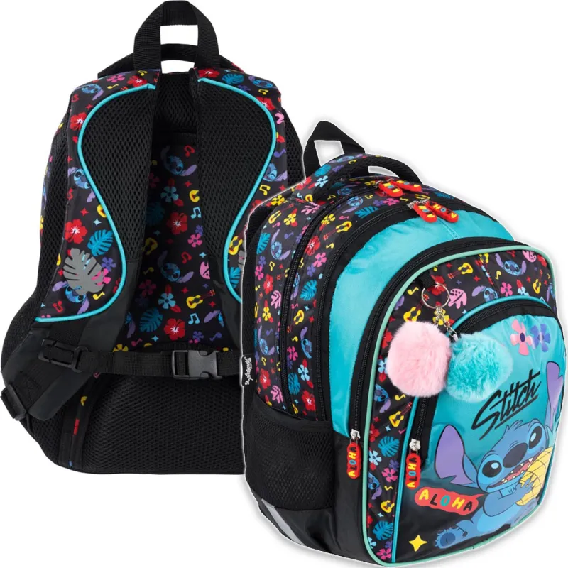 Plecak szkolny St. Majewski Stitch Aloha to połączenie wygody, stylu i funkcjonalności. Wykonany z wodoodpornego materiału, wyposażony w 4 komory, pas mostkowy, oddychające plecy i liczne udogodnienia. Idealny dla młodzieży – nie tylko do szkoły, ale i na co dzień.