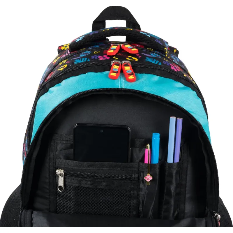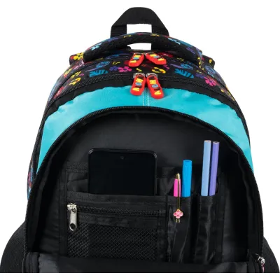 Plecak posiada cztery pojemne komory, które pomieszczą książki, zeszyty, piórnik i wszystkie niezbędne akcesoria. Dodatkowe kieszenie boczne idealnie nadają się na bidon lub drobne przedmioty. Ergonomiczne szelki z możliwością regulacji oraz usztywnione plecy zapewniają komfort noszenia i chronią kręgosłup dziecka. Całość wykonana jest z trwałego, odpornego na przetarcia materiału, który sprawdzi się przez cały rok szkolny.
