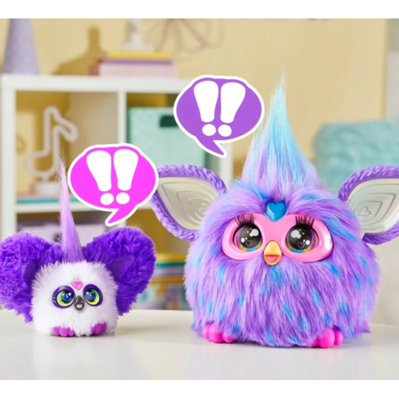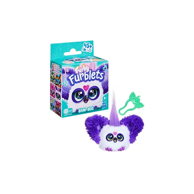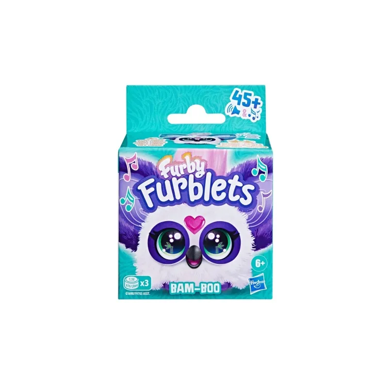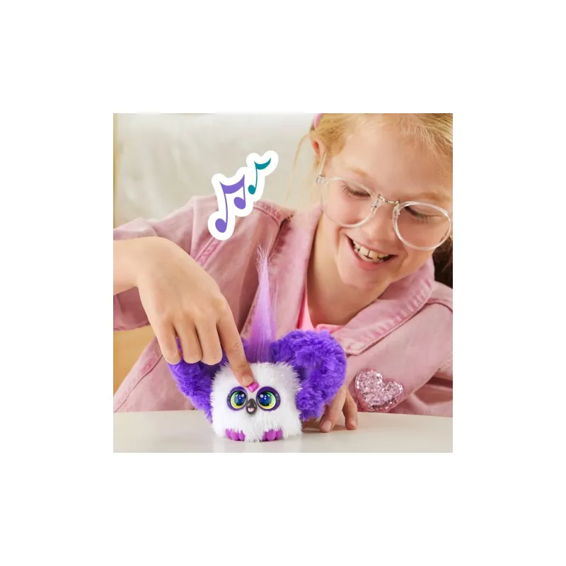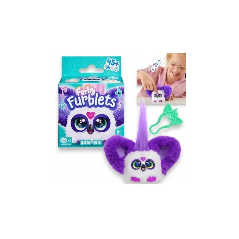 to urocza, interaktywna maskotka z wyjątkową muzyczną osobowością. Ten mały futrzak w cętki z różowym irokezem reaguje na dotyk i wydaje ponad 45 dźwięków oraz melodii. Wystarczy nacisnąć klejnocik na głowie, dotknąć dzióbka lub pogłaskać maskotkę, aby rozpocząć zabawę. Furblet mówi wyłącznie w zabawnym języku furbijskim i może wchodzić w interakcje z innymi Furbletami oraz dużym Furbym.