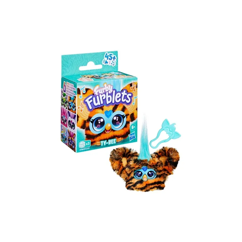 to urocza, interaktywna maskotka z wyjątkową muzyczną osobowością. Ten mały futrzak w cętki z różowym irokezem reaguje na dotyk i wydaje ponad 45 dźwięków oraz melodii. Wystarczy nacisnąć klejnocik na głowie, dotknąć dzióbka lub pogłaskać maskotkę, aby rozpocząć zabawę. Furblet mówi wyłącznie w zabawnym języku furbijskim i może wchodzić w interakcje z innymi Furbletami oraz dużym Furbym.
