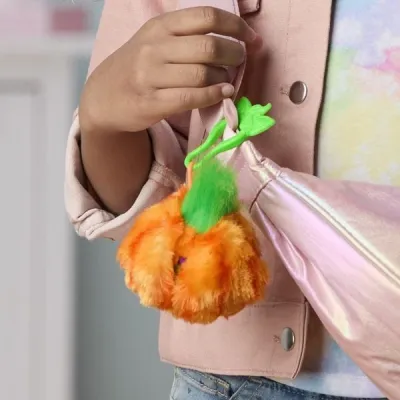 to urocza, interaktywna mini zabawka w kształcie dyni, która odtwarza ponad 45 dźwięków i melodii. Reaguje na dotyk i mówi w zabawnym języku Furbish. Dzięki klipsowi możesz przypiąć ją do plecaka i zabrać wszędzie ze sobą – idealna na jesienne przygody i jako prezent dla dzieci od 6 lat.
