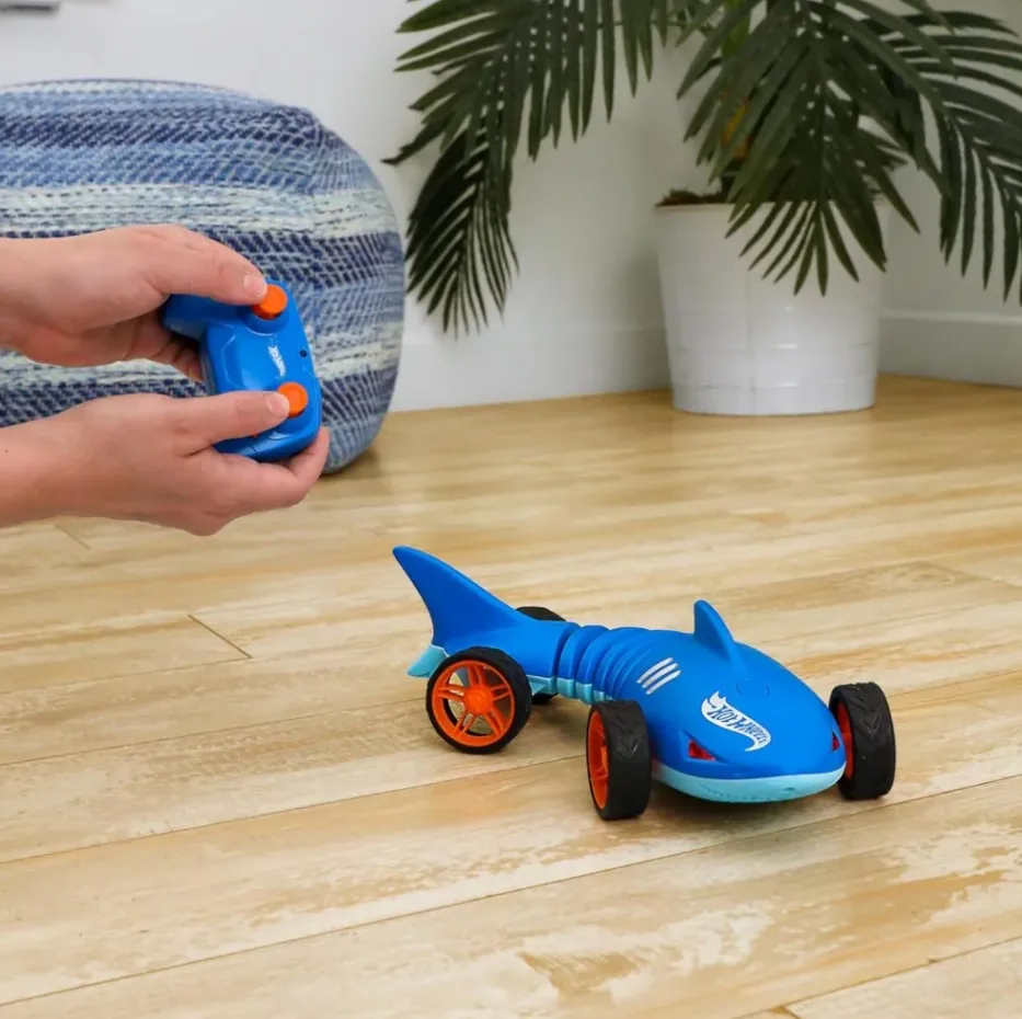 Hot Wheels Shark Speeder HJX83 to zdalnie sterowany pojazd w kształcie rekina-młota w skali 1:15. Dzięki zginanej konstrukcji porusza się jak prawdziwy drapieżnik, a jarzące się czerwone oczy i efekty dźwiękowe dodają mu charakteru. Idealny do zabawy w domu i na zewnątrz – pełen szybkości, mocy i emocji!