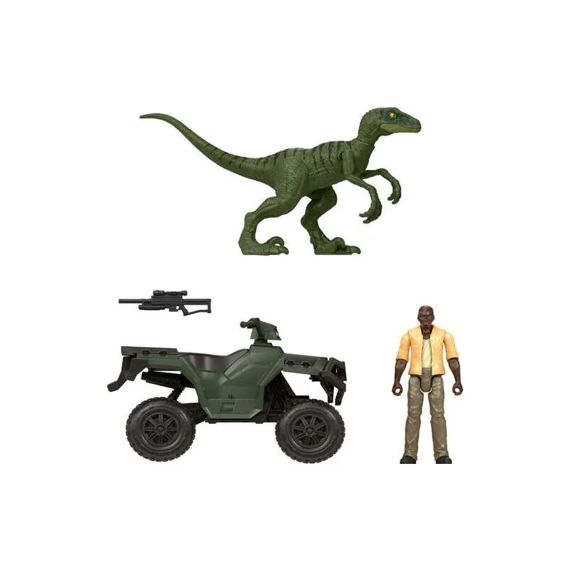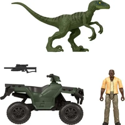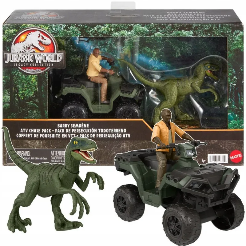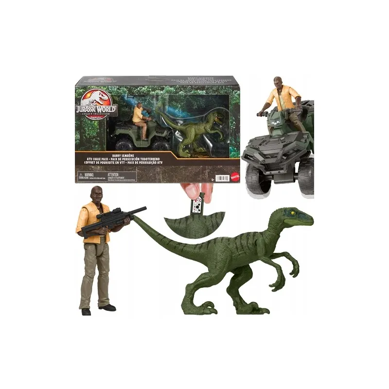 W komplecie znajdziesz figurkę Barry’ego Sembène, Velociraptora „Charlie”, pojazd ATV z ruchomym zawieszeniem i miotacz środka usypiającego. Realistyczne detale i filmowa inspiracja gwarantują ekscytującą zabawę!
