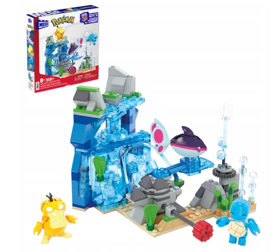 Opakowanie zawiera 319 klocków z kostką ruchu, wystarczy zakręcić korbką, aby aktywować ruchy Pokemonów