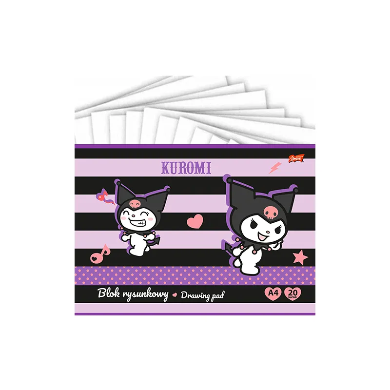 Blok rysunkowy A4 z motywem Kuromi to doskonałe połączenie funkcjonalności i atrakcyjnego designu, które przypadnie do gustu każdemu uczniowi oraz fanowi postaci ze świata Sanrio.