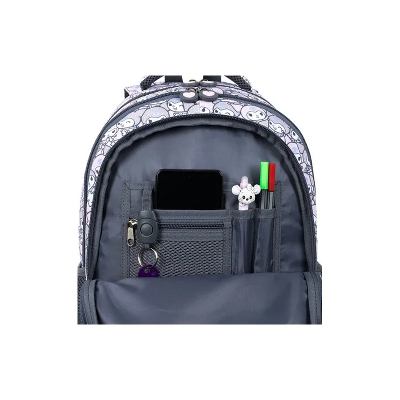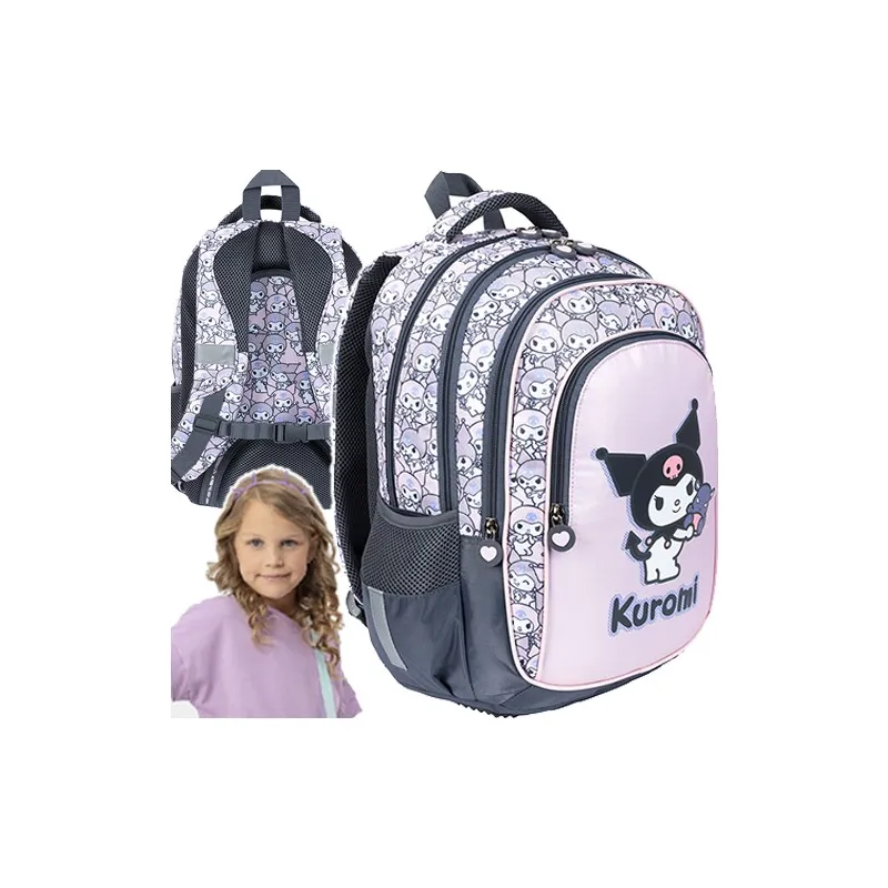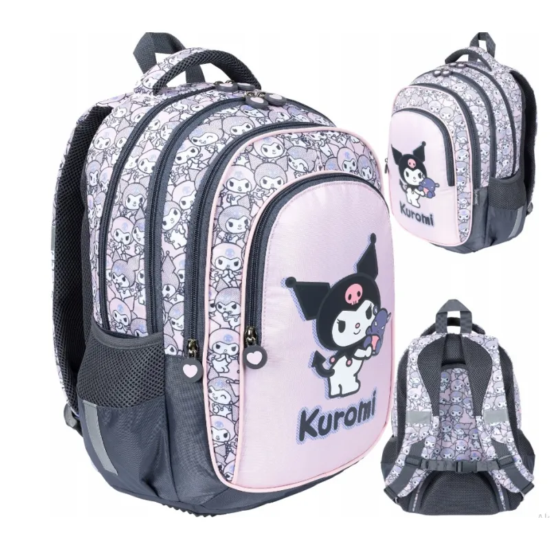 Stylowy i funkcjonalny plecak szkolny 4-komorowy Kuromi od St. Majewski to idealny wybór dla młodszych uczniów. Jasnoróżowy kolor, uroczy motyw Sanrio oraz ergonomiczna konstrukcja z oddychającymi plecami, pasem piersiowym i wieloma kieszeniami zapewniają komfort, bezpieczeństwo i porządek każdego dnia