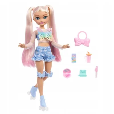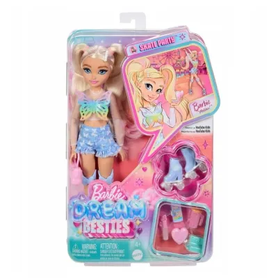 Barbie "Malibu" z serii Dream Besties wskakuje na wrotki i rusza po marzenia! W kolorowej stylizacji inspirowanej motylkami, z błyszczącą bluzką, dżinsowymi szortami i niebieskimi wrotkami, zachwyca wyglądem i pozytywną energią. W zestawie znajdziesz tematyczne akcesoria, takie jak błyszczyk, lusterko czy napój – wszystko, czego potrzebuje przyszła właścicielka firmy kosmetycznej! Idealna zabawka dla dzieci od 4. roku życia.