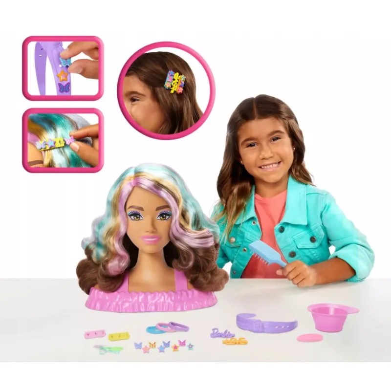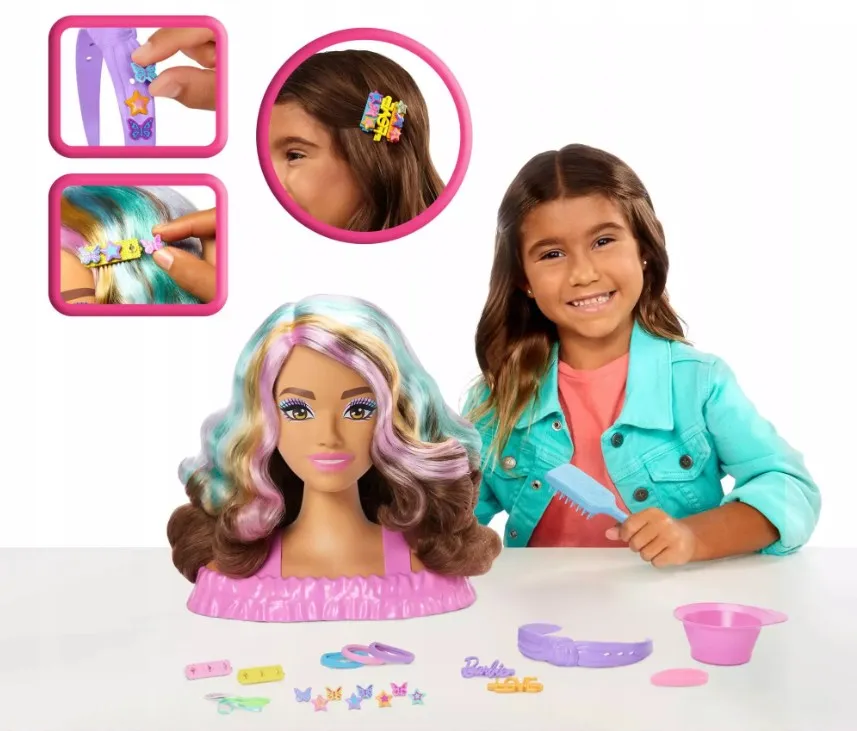 Przygotuj się na niezapomnianą zabawę z głową do stylizacji lalki Barbie, która zachwyci każde dziecko kochające modę, fryzury i kreatywne eksperymenty! Ten wyjątkowy zestaw pozwala na tworzenie niezliczonych stylizacji – od eleganckiego koka, przez urocze warkocze, aż po modne kucyki. Włosy Barbie można czesać, upinać i stylizować na wiele sposobów, co zapewnia godziny twórczej zabawy.