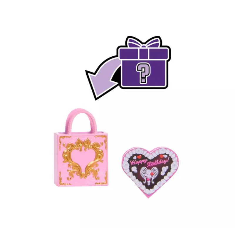 W zestawie znajdują się także urodzinowe akcesoria: torebka z prezentem-niespodzianką, zaproszenie, „balon” oraz kartka urodzinowa, które zachęcają do odgrywania kreatywnych scenek. Paleta „cieni do powiek” oraz torebka w kształcie kołczanu ze strzałami umożliwiają dodatkowe stylizacje i zabawę w makijaż i modę.