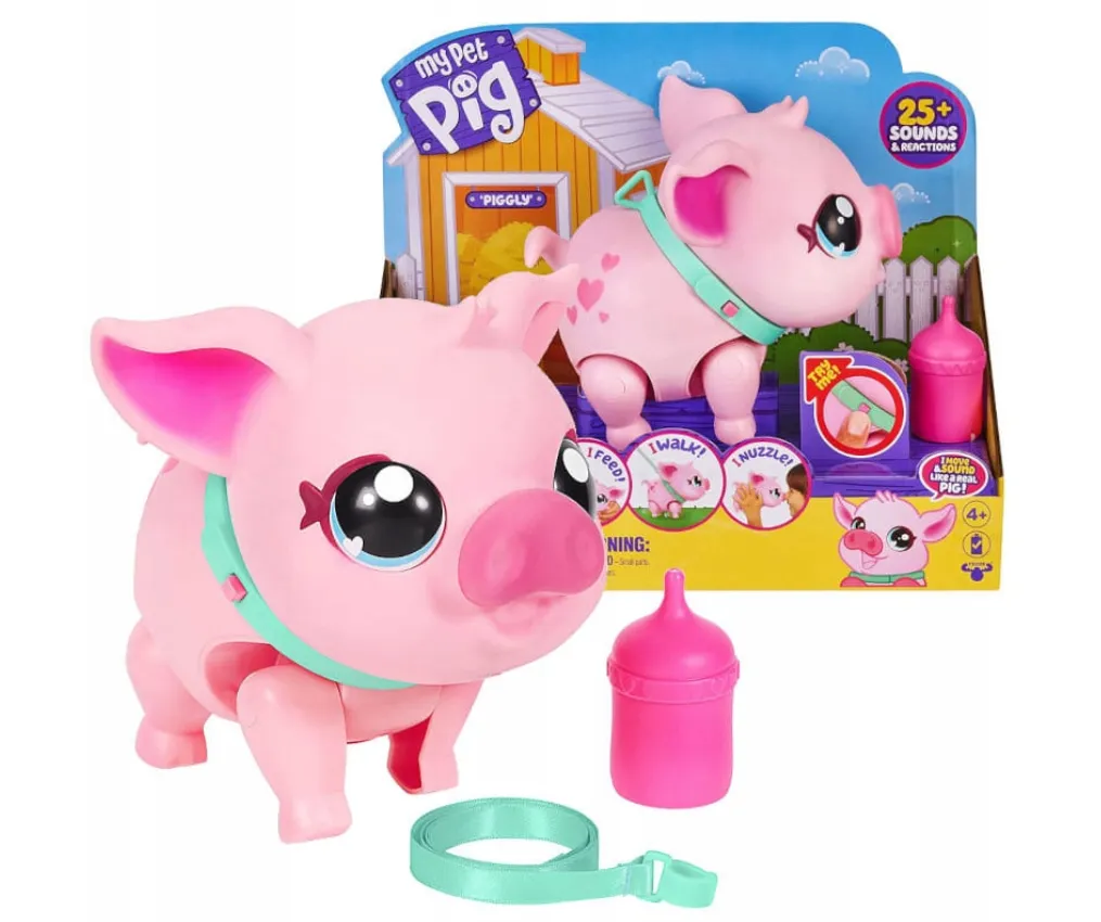 Uwielbia chodzić i tańczyć! Z ponad 25 dźwiękami i reakcjami, Piggly porusza się i wydaje dźwięki jak prawdziwa świnka