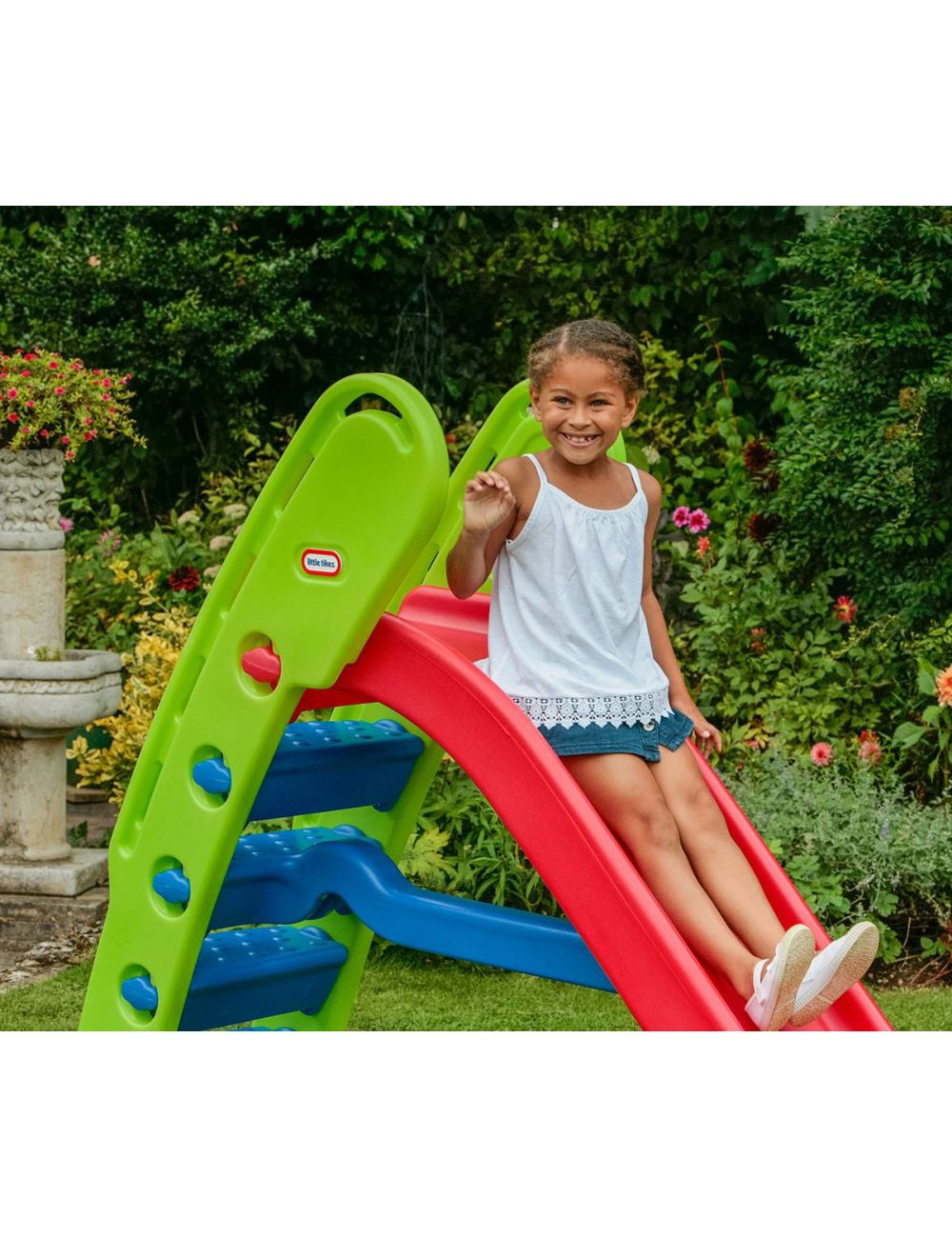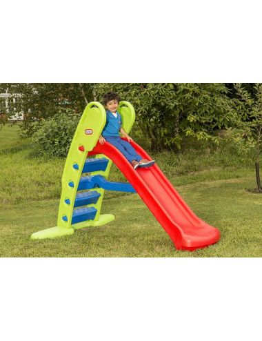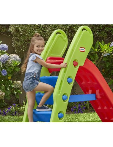 Zjeżdżalnia posiada wysokie ścianki boczne, a jej koniec jest odpowiednio zaokrąglony. Ponadto, jest ona mega długa, ma bowiem aż 180 cm długości, a odległość od podłoża do poprzeczki wynosi 44 cm. Dzięki niej zabawy w ogródku nie będzie końca. Dodatkowo zjeżdżalnia dla dzieci od Little Tikes ma na celu wspomaganie sprawności fizycznej maluchów. Zestaw można złożyć w celu wygodnego przechowywania.
