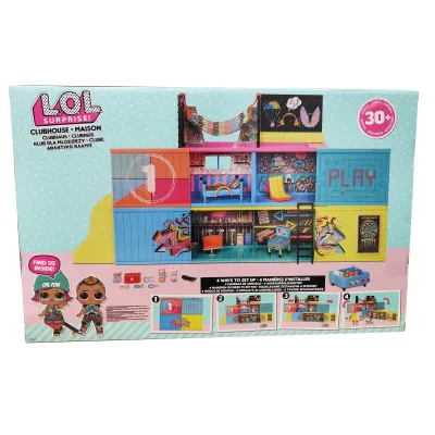 Rozpakuj ogromny zestaw dla lalek lol surprise, dzięki któremu będą mogły oddać się swoim zainteresowaniom. Cały zestaw wygląda jak pojemniki transportowe, ale po rozłożeniu przekształca się w pełni umeblowany dwupiętrowy dom klubowy. W klubowym domku znajduje się 6 miejsc do spotkań. W tym pokój gier, patio, salę filmową, sypialnie oraz kuchnię.