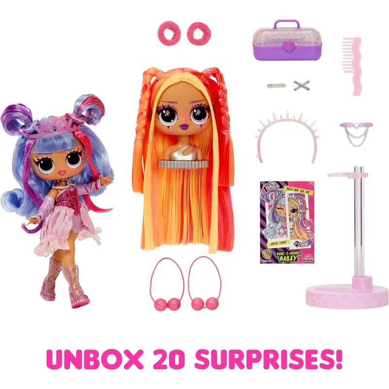 LOL Surprise Tweens Braids Bailey to zestaw lalki, który wprowadzi do zabawy ponad 20 niespodzianek i niezapomniane chwile kreatywności. Ten zestaw to nie tylko modna lalka, to także cały świat mody i stylizacji do odkrycia. Bailey jest najbardziej znana jako rewelacyjna performerka, która zaskakuje tłumy swoim potężnym wokalem. Ale poza sceną uwielbia się relaksować i odkrywać więcej swoich artystycznych talentów, między innymi poprzez pisanie wierszy. To lalka o wielu talentach, która dostarczy wiele radości. W zestawie znajdziesz funkcję wymiany głowy, co pozwoli Ci zmienić wygląd Bailey w jednej chwili. Zamieniaj jej niebiesko-fioletową fryzurę na stylizowaną głowę w kolorze neonowego różu i pomarańczu, którą można łatwo przymocować do ciała lalki. To niekończące się możliwości tworzenia nowych stylizacji.