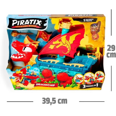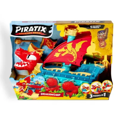 Dragon Ship to idealny prezent dla fanów serii Piratix, którzy chcą przenieść swoją zabawę na zupełnie nowy poziom – na lądzie, morzu i w powietrzu!
