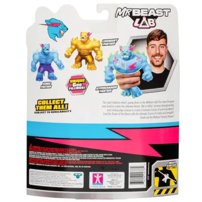 to wyjątkowa, miękka i rozciągliwa figurka inspirowana laboratorium MrBeast! Pantera potrafi rozciągać się aż do 3 razy swojego rozmiaru, a w jej wnętrzu kryje się unikalne, lepkie wypełnienie do odkrycia. Zbierz wszystkie trzy wersje: Iconic, Hypercharged i Legendary i rozpocznij pełną akcji zabawę!