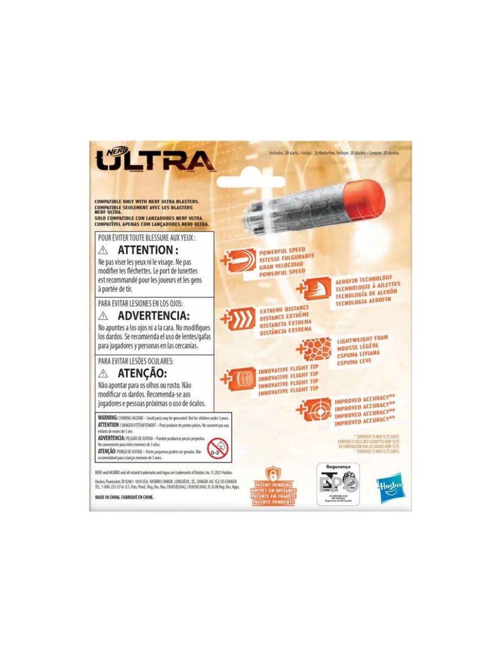 Zestaw uzupełniający do blasterów Nerf Ultra sprawi, że nigdy w ważnej sytuacji w bitwie nie zabraknie ci amunicji. Opakowanie zawiera 20 sztuk naboi do pistoletów. Posiadają one specjalną budowę z końcówka lotną Aerofin oraz ultra lekką piankę. Dzięki temu zabiegowi trzymają prawidłowy tor lotu oraz wystrzeliwują na duże odległości. Przenieś zabawę na wyższy poziom dzięki nabojom i blasterom Nerf Ultra (pistolety sprzedawane oddzielnie).