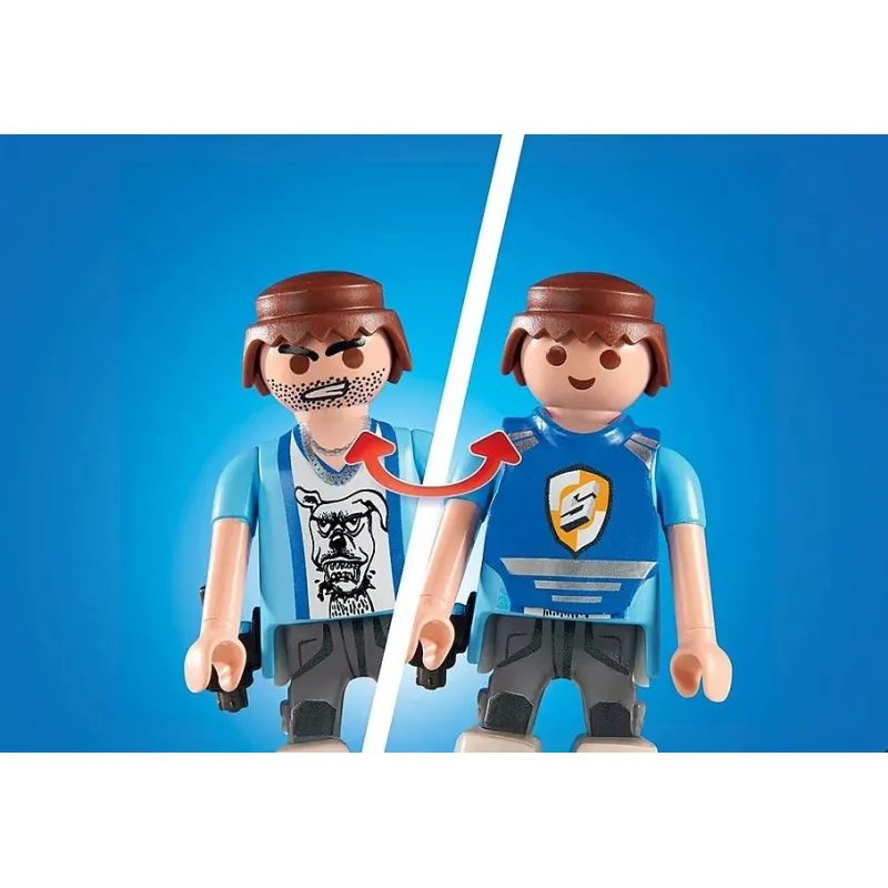 Figurki posiadają ruchome elementy i mogą trzymać różne przedmioty, takie jak broń, krótkofalówki czy smycz dla psa. Jedna z figurek ma obracaną twarz, dzięki czemu dziecko może zdecydować, czy postać będzie policjantem czy przestępcą.
