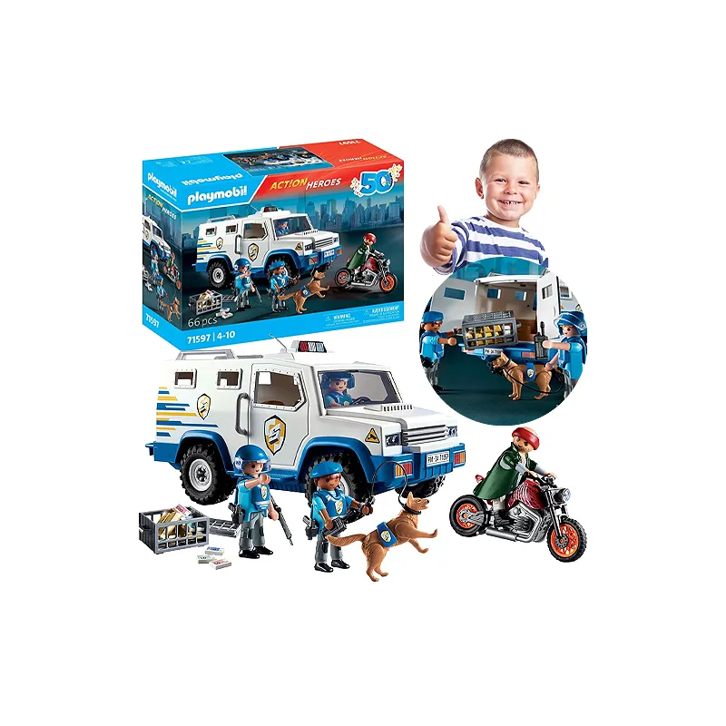 Może być używany samodzielnie lub łączony z innymi zestawami z serii Playmobil Action Heroes, co pozwala rozbudować świat policyjnych przygód i zapewnia jeszcze więcej możliwości zabawy.