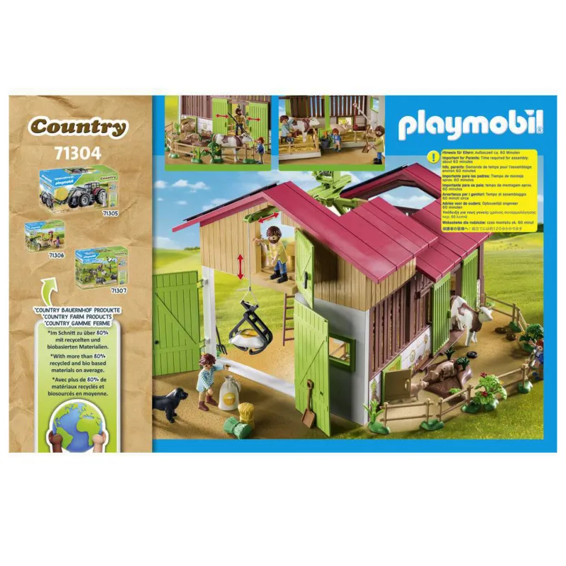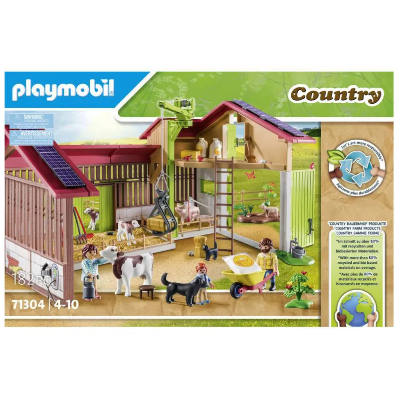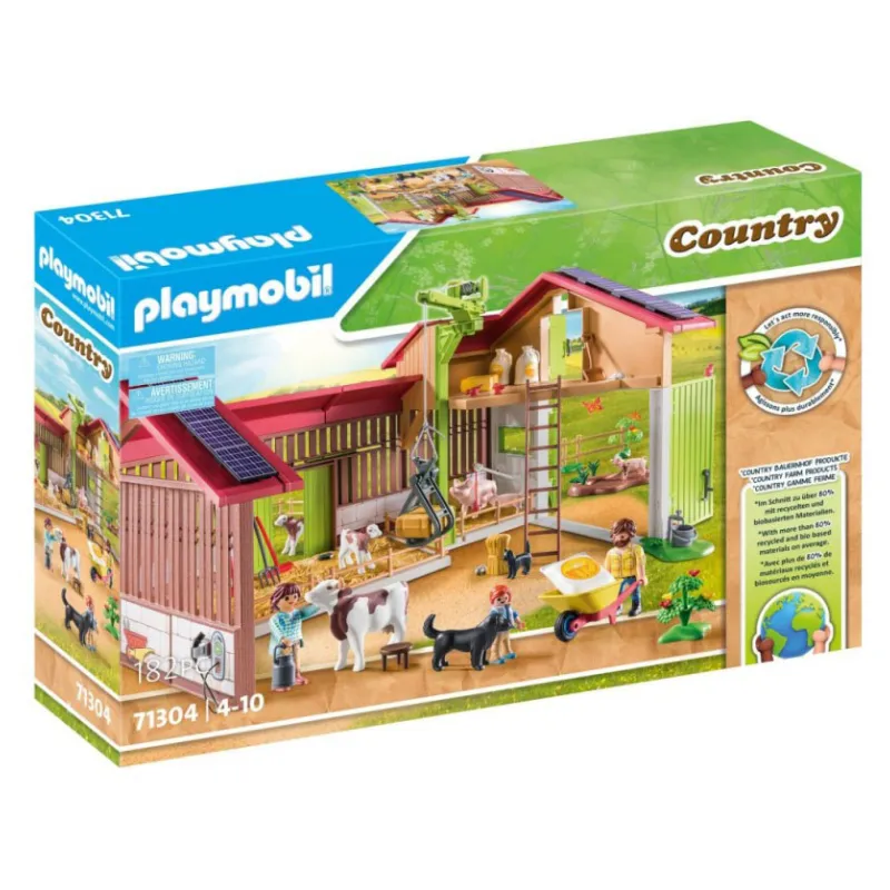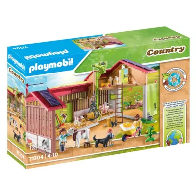 Zestaw Playmobil Country Duże gospodarstwo 71304 przenosi dzieci w tętniący życiem świat nowoczesnej farmy. Ten bogaty, 182-elementowy komplet z serii Playmobil Country pozwala tworzyć własne historie związane z codziennym życiem na wsi i opieką nad zwierzętami.