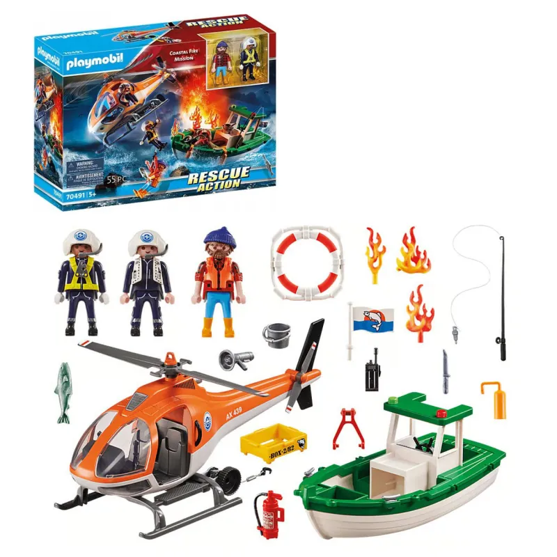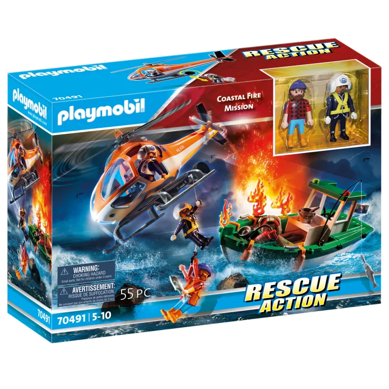 Zestaw Playmobil Rescue Action Misja przybrzeżnej straży pożarnej 70491 od marki Playmobil przenosi dzieci w sam środek akcji ratunkowej na wodzie. Bohaterowie z serii Playmobil Rescue Action są zawsze gotowi, aby nieść pomoc w każdej sytuacji – także na morzu i przy wybrzeżu.