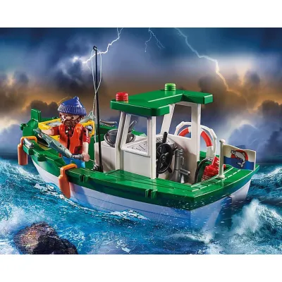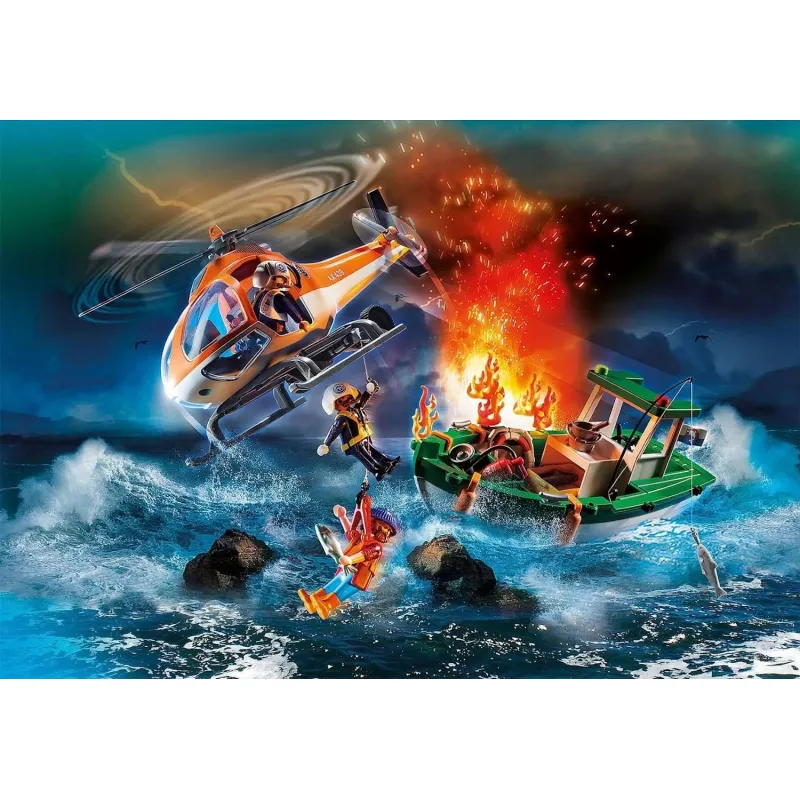 to dynamiczna zabawka z serii Playmobil Rescue Action, która pozwala dzieciom wcielić się w rolę ratowników prowadzących akcję na morzu. W komplecie znajduje się łódź straży pożarnej, figurki oraz liczne akcesoria ratunkowe. Zestaw rozwija wyobraźnię i zachęca do odgrywania emocjonujących scen ratunkowych.