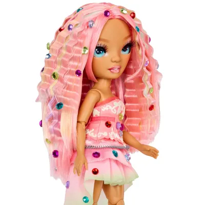 zachwyca romantycznym, różowym stylem inspirowanym paryską modą couture. Ma lśniące włosy, realistyczne rzęsy i błyszczące oczy. W zestawie znajduje się narzędzie do dekorowania oraz kryształki, dzięki którym można ozdabiać strój i fryzurę lalki. Ruchome ręce, nogi i głowa pozwalają ustawiać ją w różnych pozach i tworzyć kreatywne historie modowe.