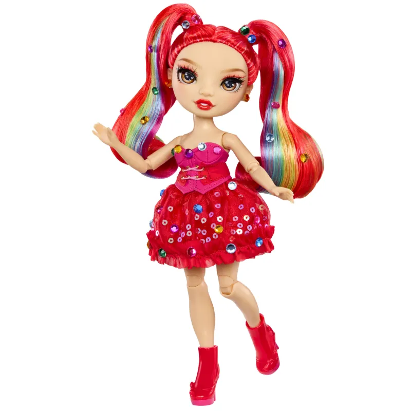• Lalka Vivienne Rouge ubrana w modny czerwony strój inspirowany stylem Rainbow High.