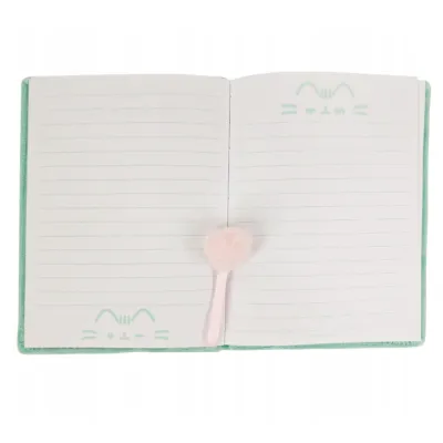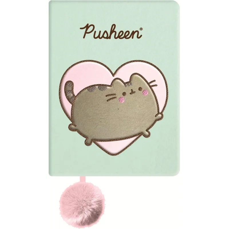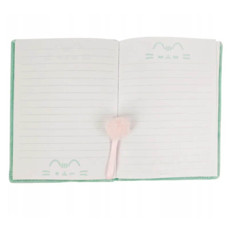 Mięciutki pamiętnik A5 z wizerunkiem Pusheen w pastelowym, miętowym kolorze. Idealny na notatki, rysunki i sekrety – 96 stron w linie, pluszowa okładka, uroczy design i puszysty różowy pomponik. Must-have dla fanów Pusheen i stylowych gadżetów!