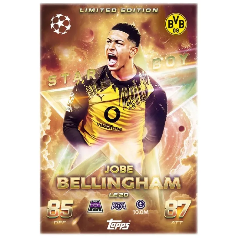 W środku znajdziesz 3 saszetki Match Attax 2026, a w każdej z nich po 12 kart przedstawiających piłkarzy największych europejskich klubów. Dodatkowo zestaw zawiera 2 specjalne karty Star Boy Limited Edition oraz 1 unikatową kartę The Graduates Limited Edition, które wyróżniają się efektownym designem i wysoką wartością kolekcjonerską.