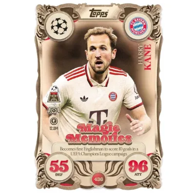 Seria Topps Match Attax 2025/26 przynosi zupełnie nowe emocje dzięki świeżym kategoriom kart, takim jak Leaders, Showboats czy Counter Attax, a także długo wyczekiwanemu powrotowi kultowych klasyków: 100 Club oraz Chrome Shield. Każdy blister to aż 39 kart, które mogą stać się ozdobą Twojej kolekcji.
