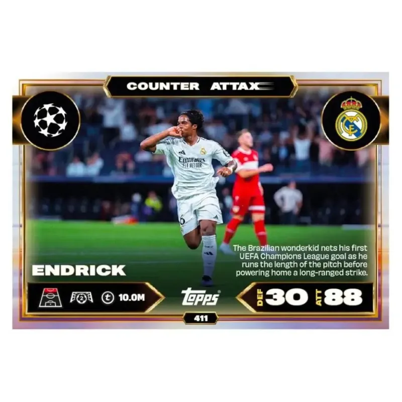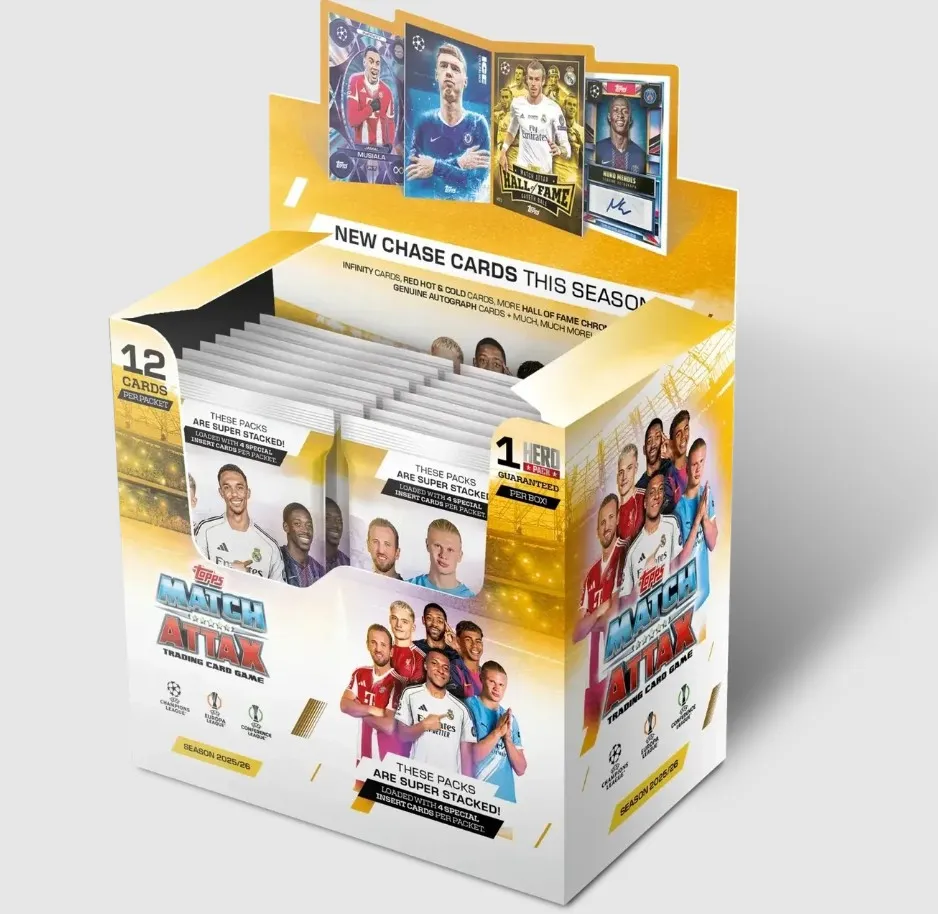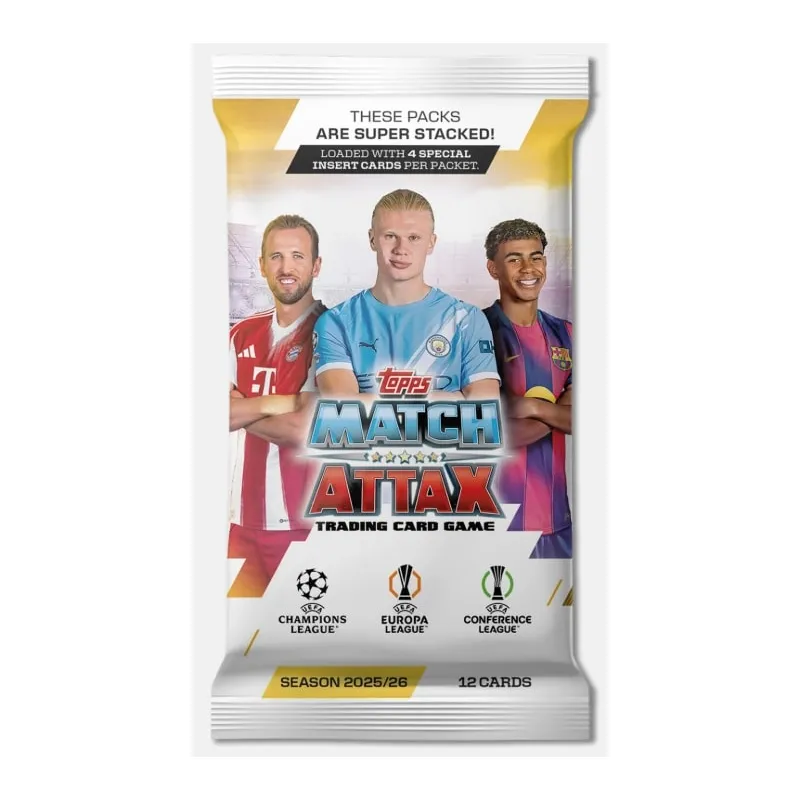 Match Attax 25/26 to najnowsza odsłona kultowej serii kart kolekcjonerskich Topps, która w sezonie 2025/26 wznosi się na zupełnie nowy poziom. Kolekcja obejmuje wszystkie trzy klubowe rozgrywki UEFA — Champions League, Europa League oraz Europa Conference League — prezentując największe piłkarskie gwiazdy, legendy oraz wschodzące talenty europejskiego futbolu.
